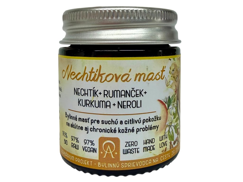 Nechtíkova masť obsahuje extrakt z kvetov nechtíka, rumančeka, koreňa kurkumy, kvetov pomaranča a slamihy. Pôsobí protizápalovo a ukľudňujúco. Urýchľuje liečenie poranení kože, záderov okolo nechtov, ekzémov, psoriázy, akné, pomáha pri zápaloch žíl, kŕčových žilách,preležaninách a zapareninách.