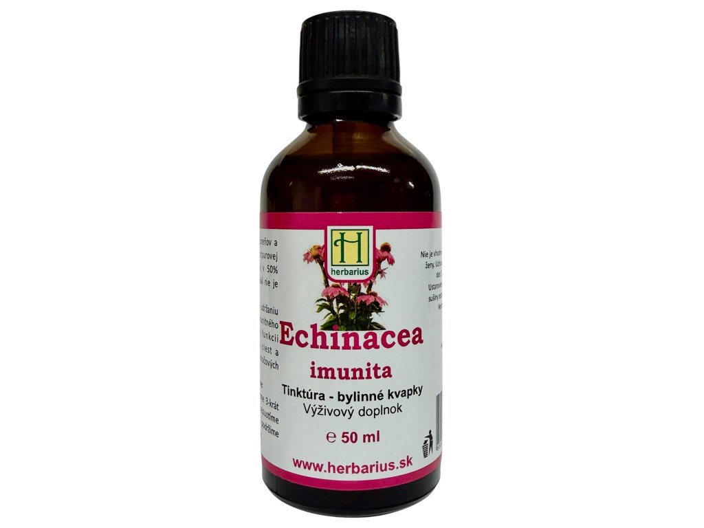Extrakt z koreňov a kvetov echinacey purpurovej (Echinacea purpurea) v 50% alkohole. Prípadný zákal nie je na závadu.