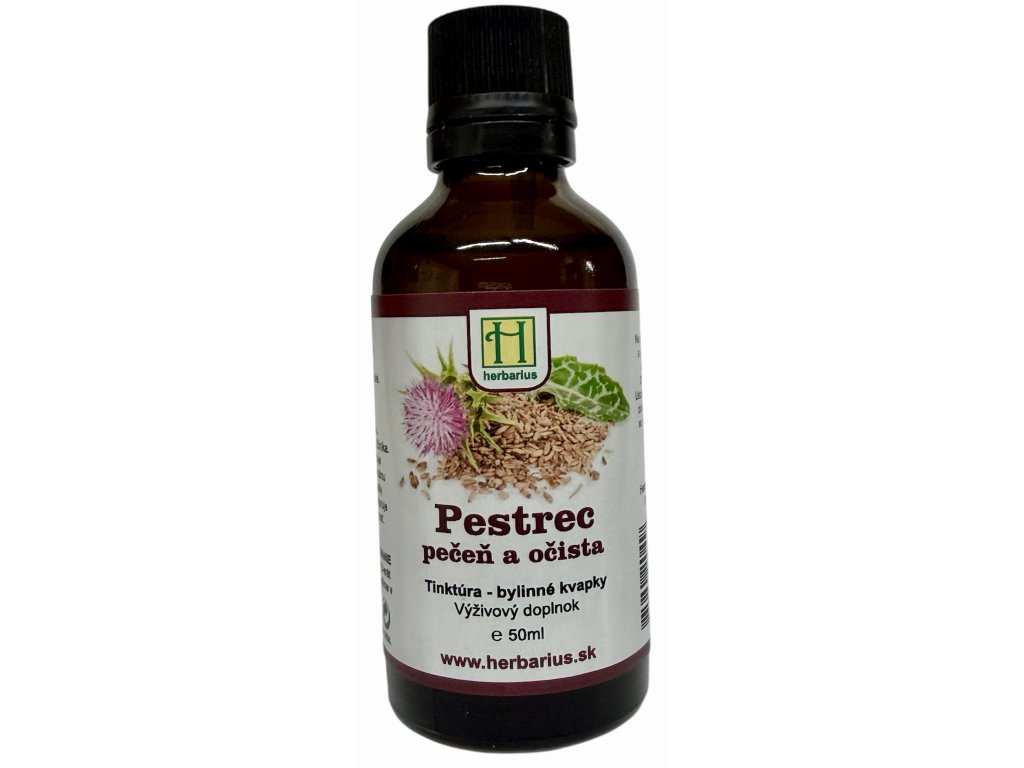 Extrakt z plodov pestreca mariánskeho (Silybum mariannum) v 50% alkohole. Prípadný zákal nie je na závadu.