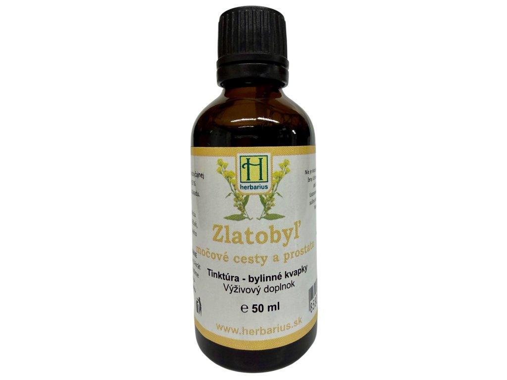 Extrakt z vňate zlatobyľe obyčajnej (Solidago virgaurea L.) v 50 % alkohole. Zákal nie je na závadu.