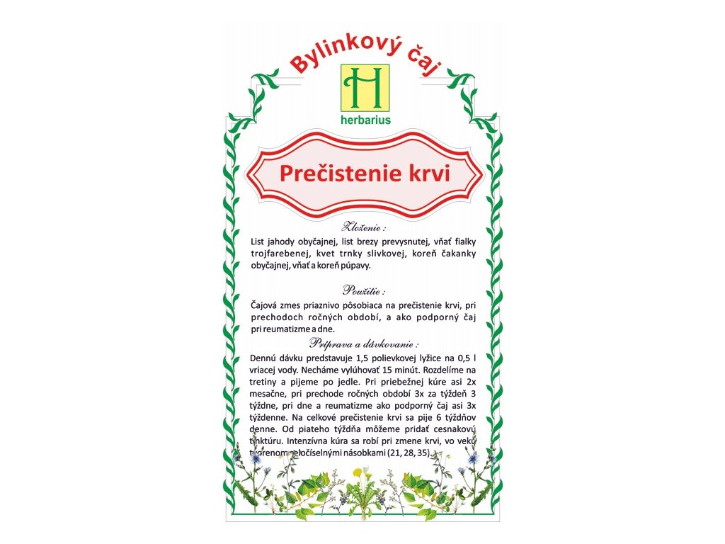 Dennú dávku predstavuje 1,5 polievkovej lyžice na 0,5 l vriacej vody. Necháme vylúhovať 15 minút. Rozdelíme na tretiny a pijeme po jedle. Pri priebežnej kúre asi 2x mesačne, pri prechode ročných období 3x za týždeň 3 týždne, pri dne a reumatizme ako podporný čaj asi 3x týždenne. Na celkové prečistenie krvi sa pije 6 týždňov denne. Od piateho týždňa môžeme pridať cesnakovú tinktúru. Intenzívna kúra sa robí pri zmene krvi, vo veku tvorenom celočíselnými násobkami (21, 28, 35).